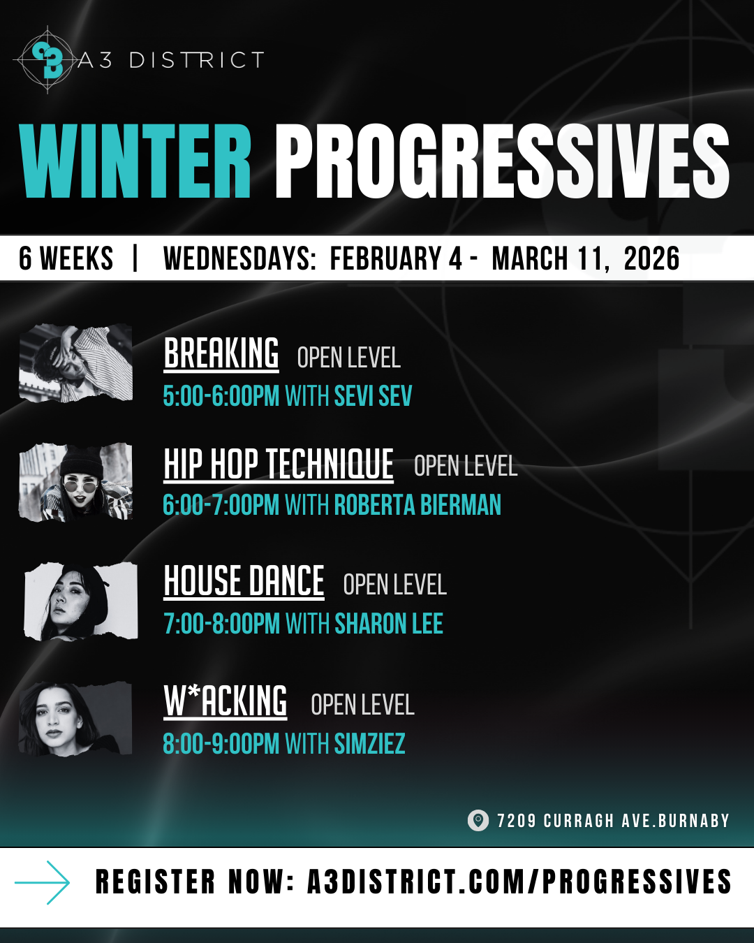 Progressives are non-competitive programs that offer a shorter term commitment with an opportunity to progress each week. We offer different progressives throughout the year with a variety of dance genres/styles and instructors. Access to HD production footage and select performance opportunities may be available.